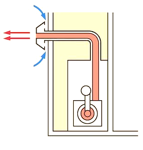 Since refrigerator burners are tucked away in an enclosed space, the burners must be supplied with sufficient combustion air, and exhaust gases must be vented outside. Direct vent fridges need to be located/installed on an outside wall.